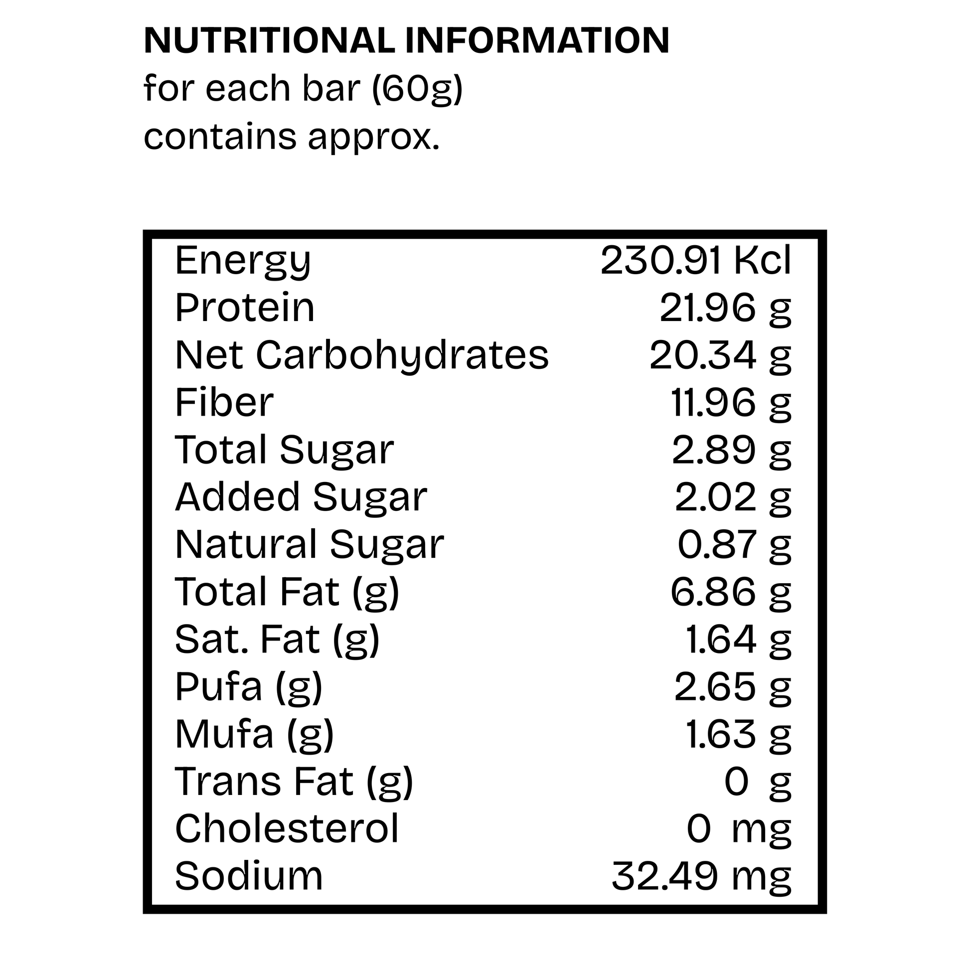 Nutritional Information (per 60g bar)